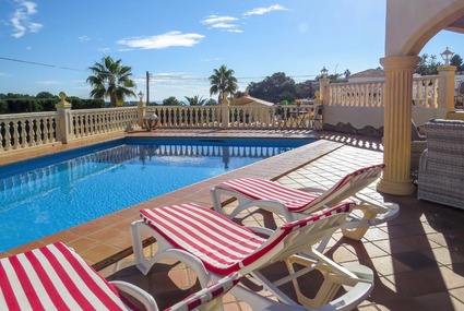 logg inn Du kan parkere ved trygt på privat eiendom Gralla ligger i et rolig område. Avstanden til stranden er 2500 meter Gralla ligger ved på gatenivå. Du når inngangen gjennom kort trapp ovenpå. Gralla er en helt frittliggende villa med privat svømmebasseng. Inngang: Her finner du den stue, Kjøkken, spisestue og 2 soverom og 1 bad. Interiøret til Gralla er spansk og funksjonell. Innsiden er en blanding av forskjellige farger med en hyggelig atmosfære. Gralla har en en fin utsikt Middelhavet. Gralla har et overflatemål på 120 kvadratmeterDu disponerer en naturlig hage. Du finner svømmebassenget på ved fremsiden av villaen din. Her kan du nyte spansk sol og friluftsliv. Denne ferieboligen er svært godt egnet for familier .