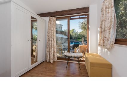Enkelt og koseligt møbler: stue/spisestue med skråtak med, 1 uttrekkbar seng (2 pers.), åpen peis og satelit-TV. Utgang til terrassen, til badebassenget. 1 rom med, 1 dobbeltseng (lengde 180 cm). 1 rom med, 1 dobbeltseng (lengde 150 cm). Lite kjøkkenkrok (2 keramiske kokeplater, mikrobølgeovn, elektrisk kaffemaskin). Bad/bidé/WC. Airconditioning, varmluftsoppvarming. Terrasse 30 m2, lysthus 20 m2. Terrassemøbler, grill, liggestoler (8). Panoramautsikt av fjellene, dalen og området. Fasiliteter: vaskemaskin, strykejern, barneseng for barn opp til 3 år. Parkeringsplass (inngjerdet). Kjæledyr / hund tillatt 1 kjæledyr / hund tillatt. Et av soverommene er ikke tilgjengelig fra inne i huset, inngangen er fra verandaen. Det er en enkeltseng på hemsen i stuen, tilgang via en veldig bratt trapp. Kull til peisen (ekstra). Kjøleskapet på kjøkkenet er lite. Egenprodusert vin som velkomstgave. 2236-2006